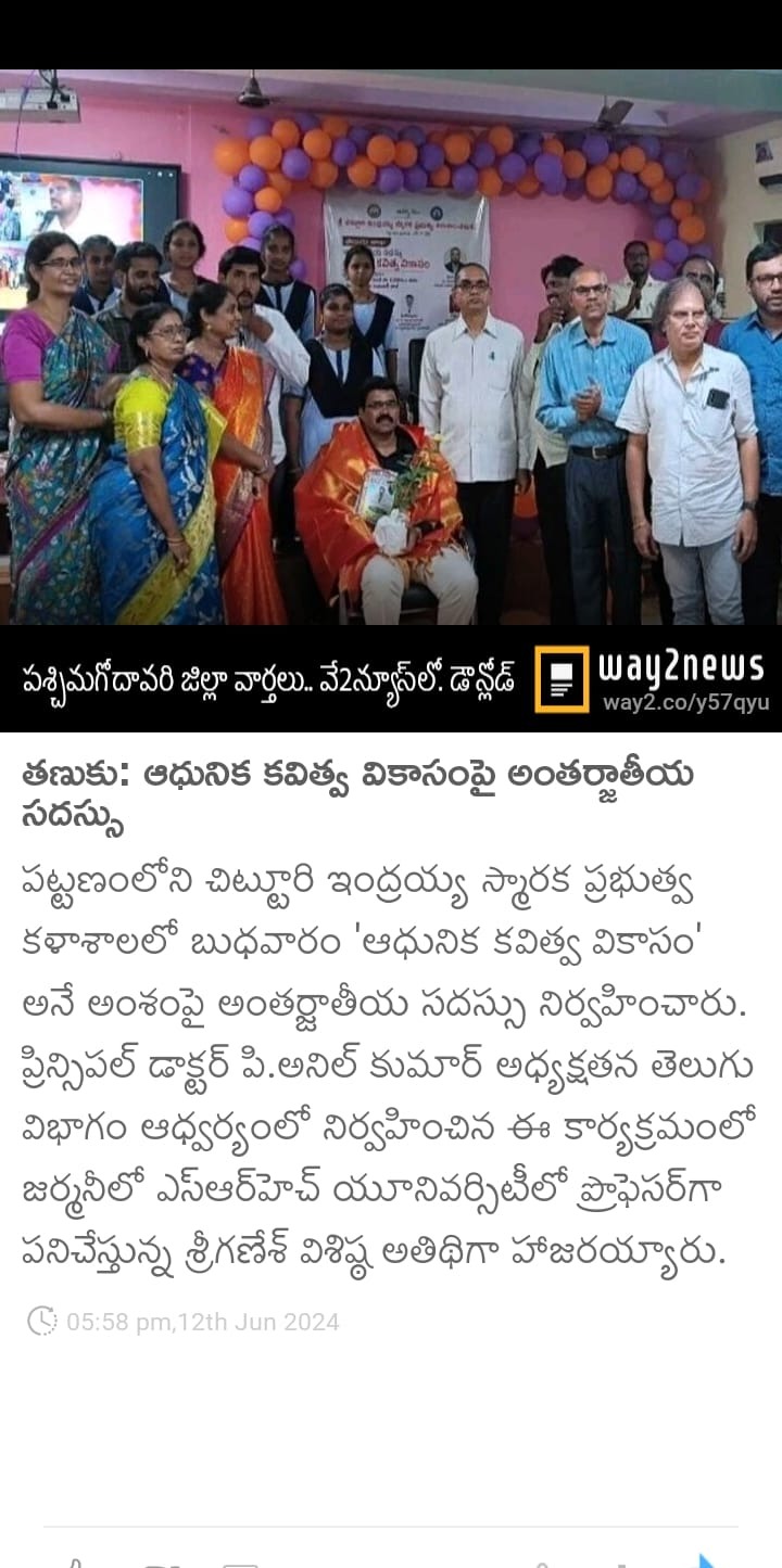 "ఆధునిక కవిత్వ వికాసం " అంతర్జాతీయ సదస్సు పుస్తకావిష్కరణ 25.02.2025