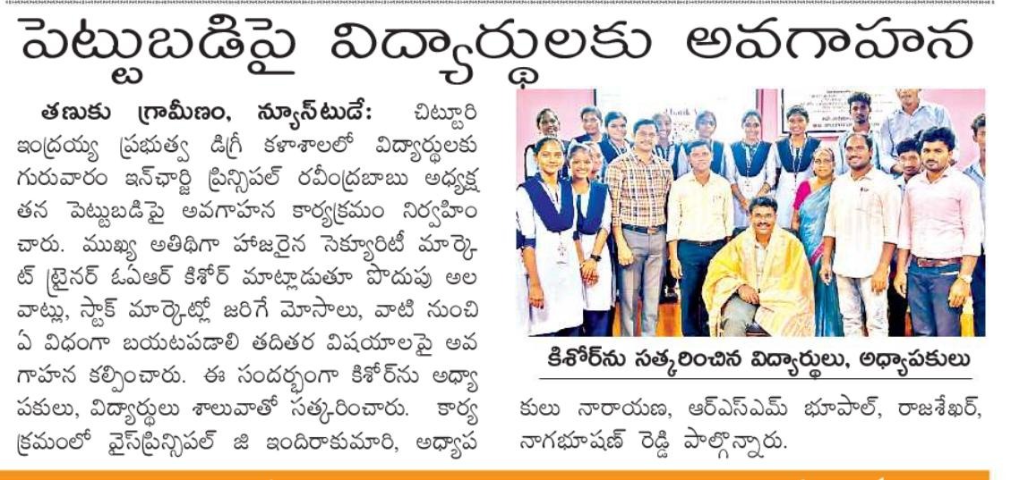 SMARTs Investor Awarness Programme by Dr.OAR Kishore, Assistant Professor of Commerce.