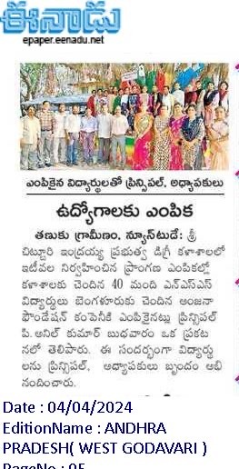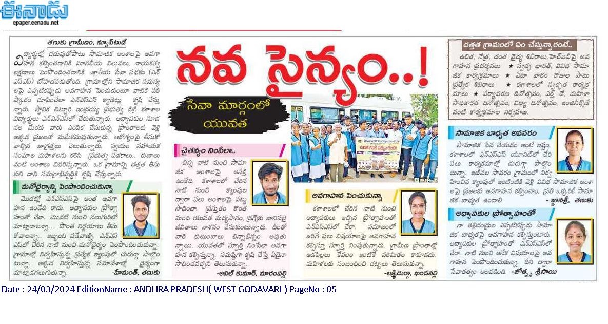 NSS SPECIAL CAMP EENADU NEWS PAPER ARTICLE